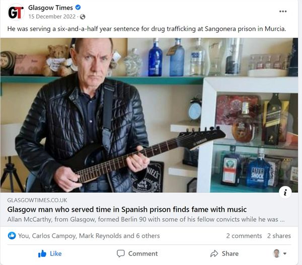 Allan McCarthy, de Glasgow, formó Berlín 90 con algunos de sus compañeros de prisión mientras cumplía una condena de seis años y medio por tráfico de drogas en la prisión de Sangonera.